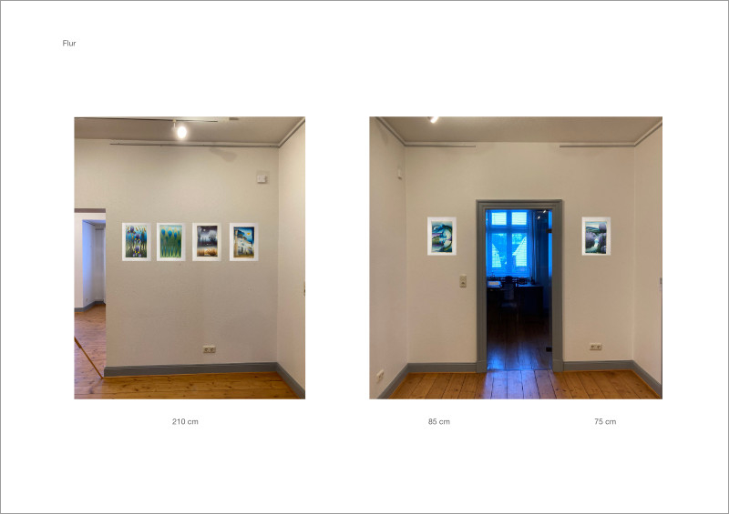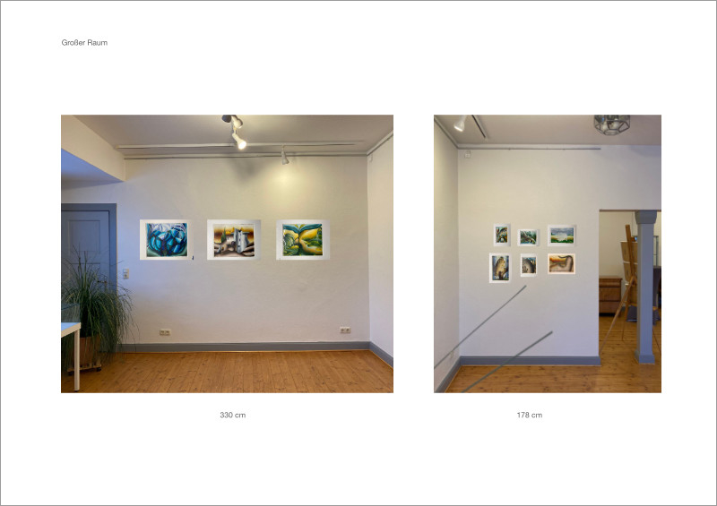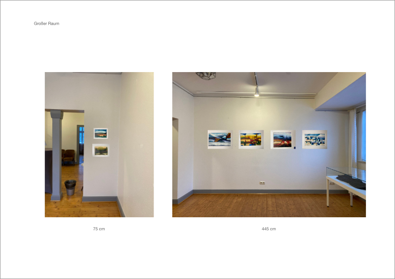 • Fotos der Werke in den digitalen Räumen platziert (siehe Beispiele unten)