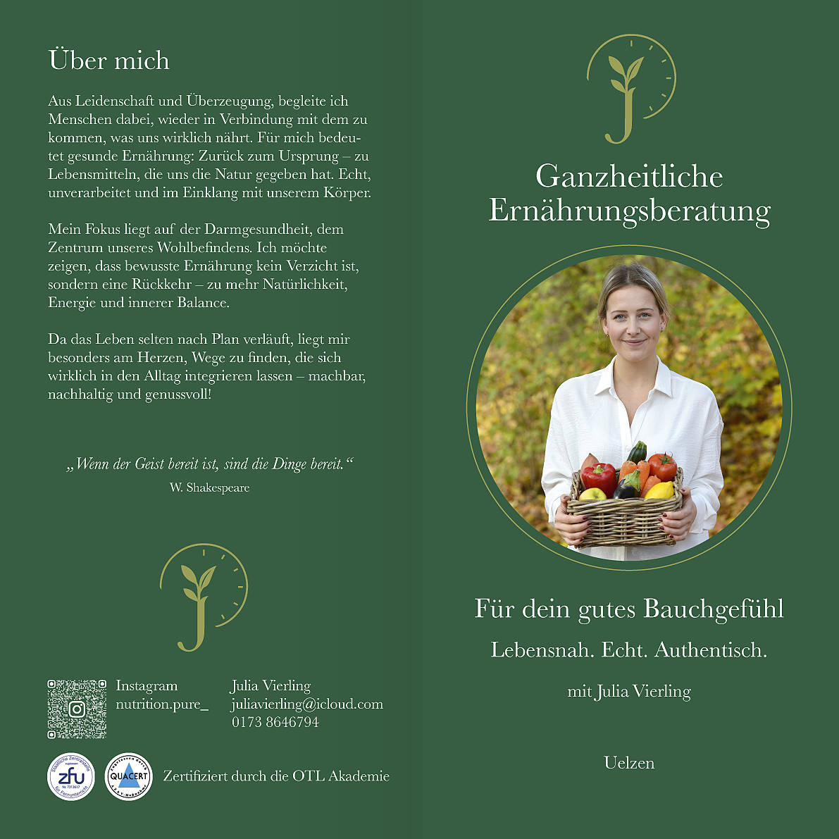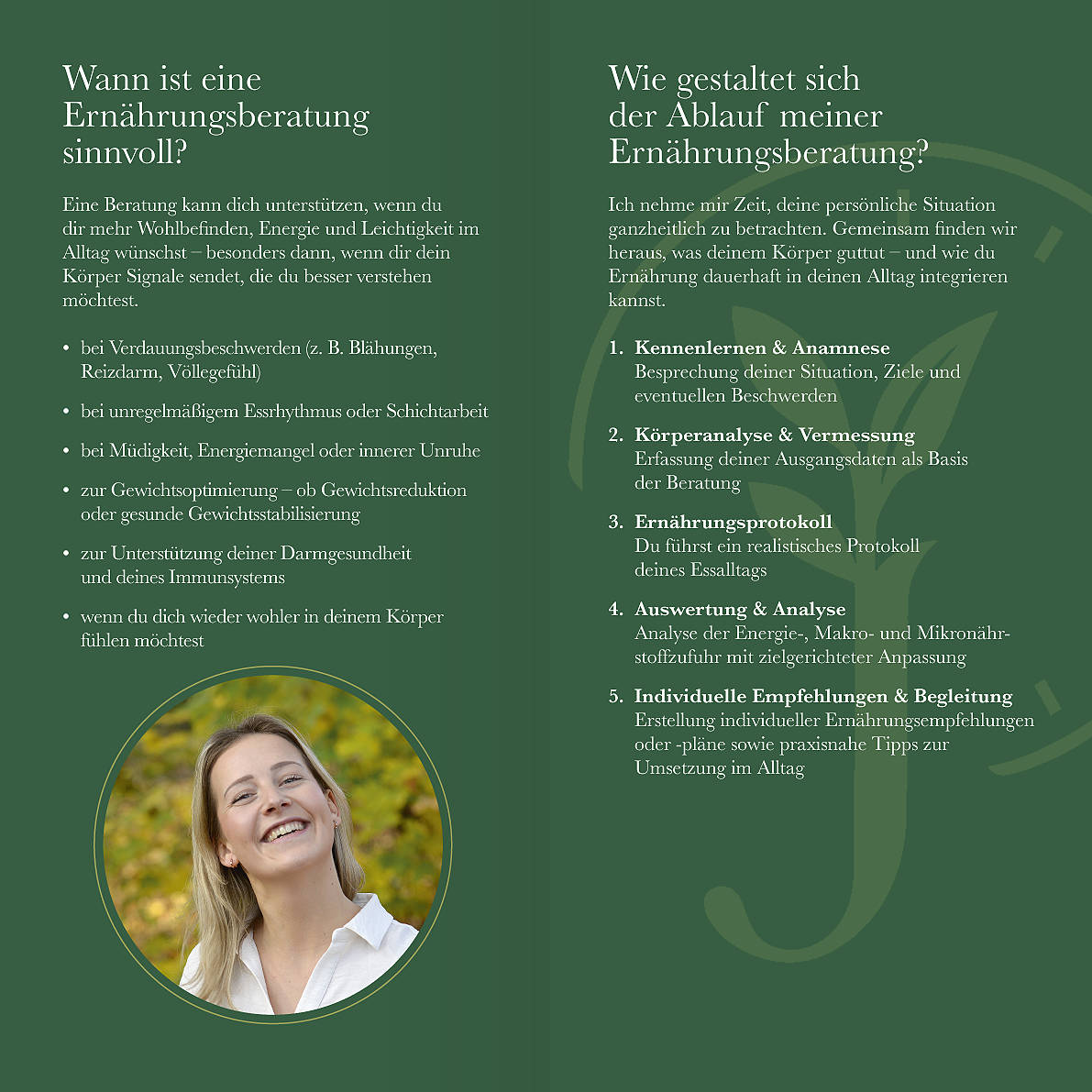 Umsetzung: Die Kundin hat die Inhalte gut vorbereitet und ihre Vorstellungen für Schrift und Farben selbst definiert. Somit konnte der Designprozess verkürzt werden. Durch Zugabe von inhaltlichen Tipps, Design, Typografie und authentischen Fotos konnte ein aussagekräftiger Flyer entstehen.